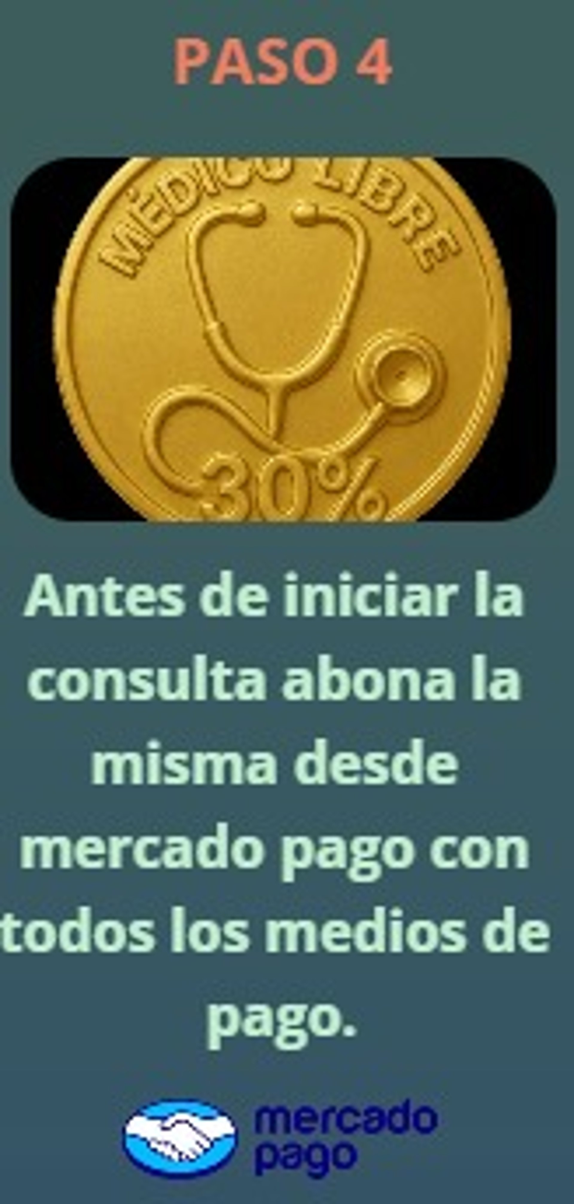 Se puede abonar al instante con todos los medios de pago a través de Mercado pago o por transferencia. El sistema lo guiará mientras realiza su consulta. En www.medicolibre.com/planes encontrará información acerca del valor de la consulta y distintas promociones.
